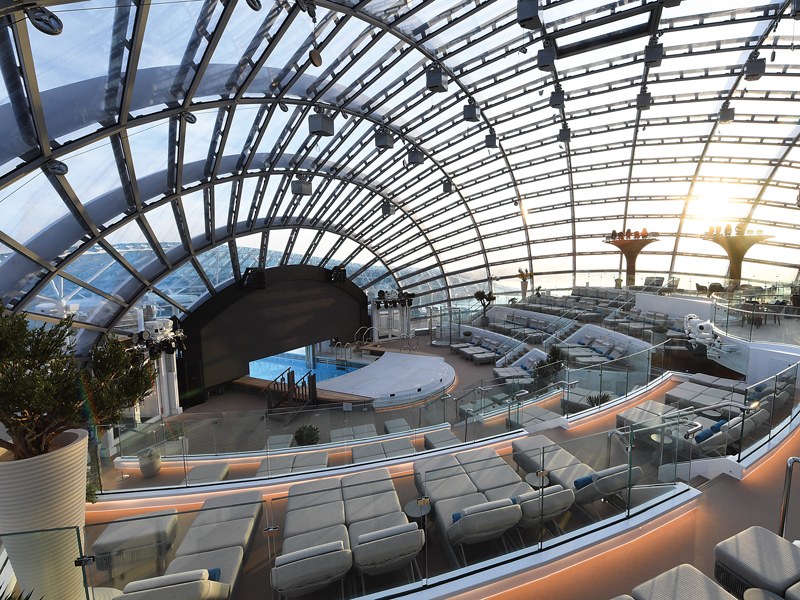 The Dome: A glass-covered wonder with pool and shows – the magical meeting place of Star Princess