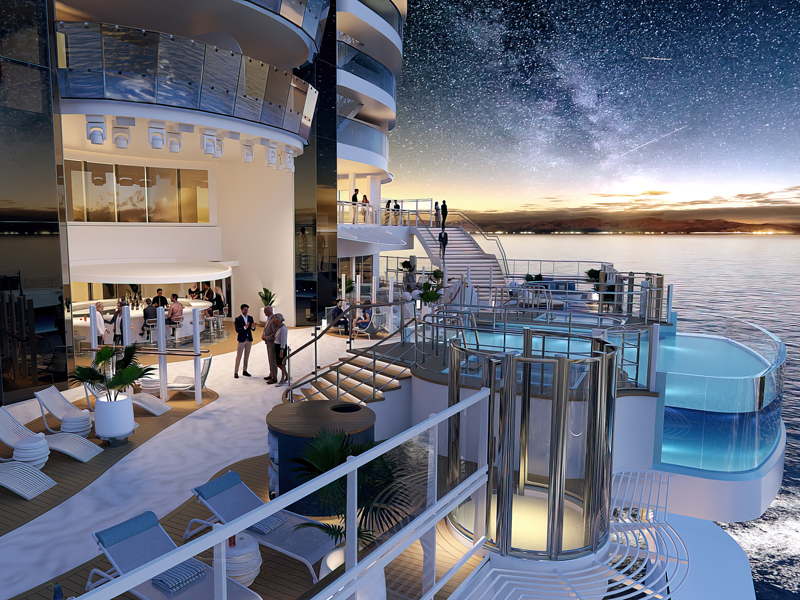 An infinity pool and sweeping ocean views come together at the ship’s aft to create pure relaxation